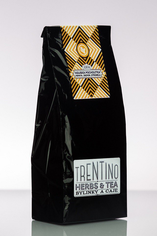 složení: papájové kousky (papája, cukr, kyselina citronová) 20%, zázvorové kousky (zázvor,cukr) 20%, ginger 20%, citronela 20%, listy ostružiny 10%, kousky pomeranče 7%, květ smilu italského 1,5%, květ divizny